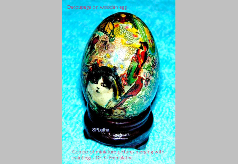 Decoupage Art on wooden egg by Dr. S. Premalatha
