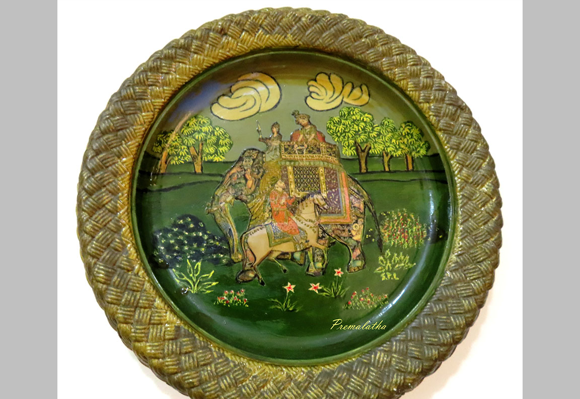 Decoupage Art over an old plastic plate by Dr. S.Premalatha
