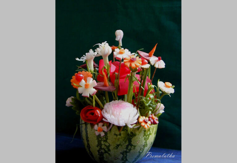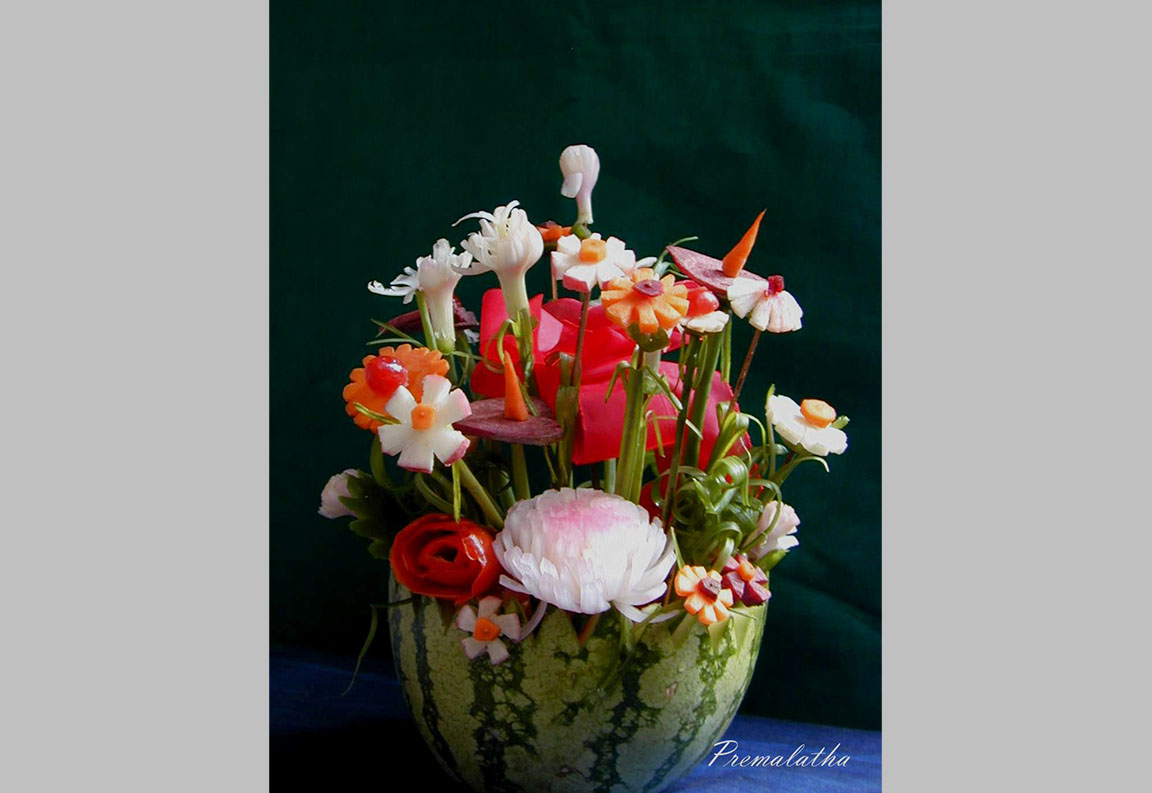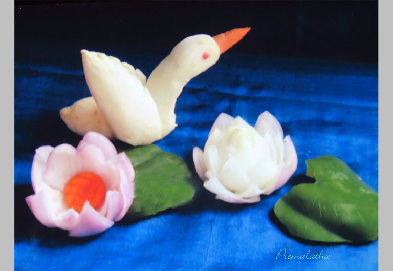 Veg Carving-Swan ,Lotus and leaves ( White Radish, Onion, Carrot and Capsicum)