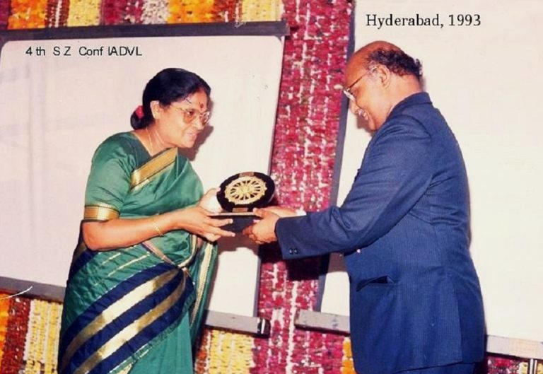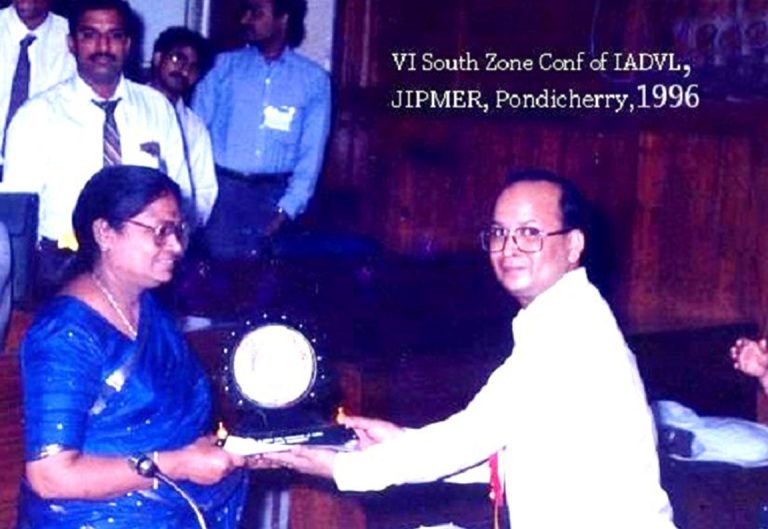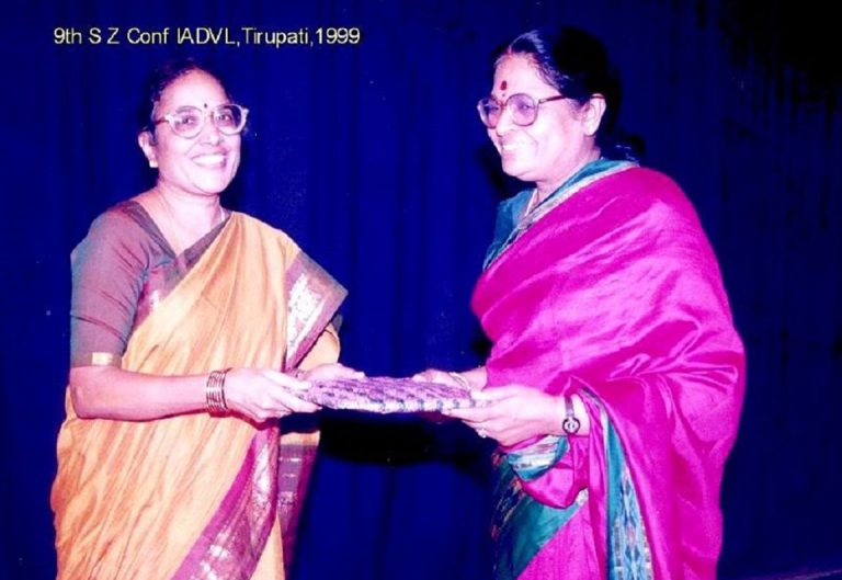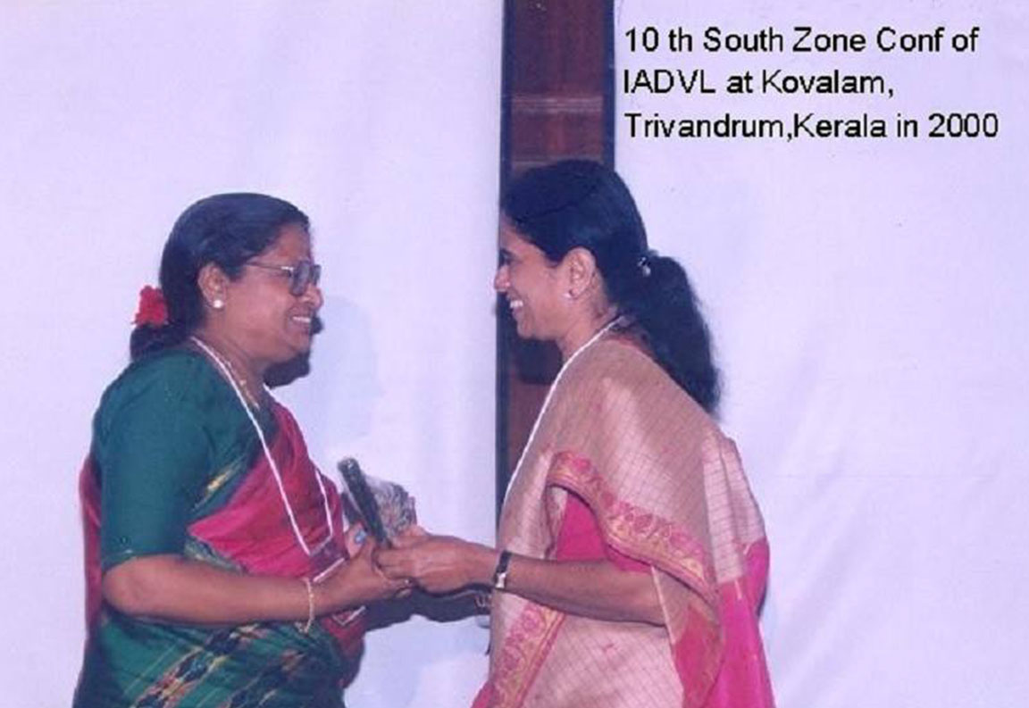 Receiving a memento from Dr. Gowri, Usmania University, Hydrabad, 9th SZ Conf of IADVl at Tirupathi, AP in 1999.