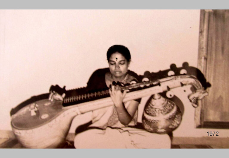 Dr. S. Premalatha practicing Veena at home. PC her husband in 1972.