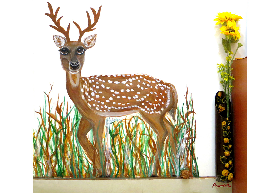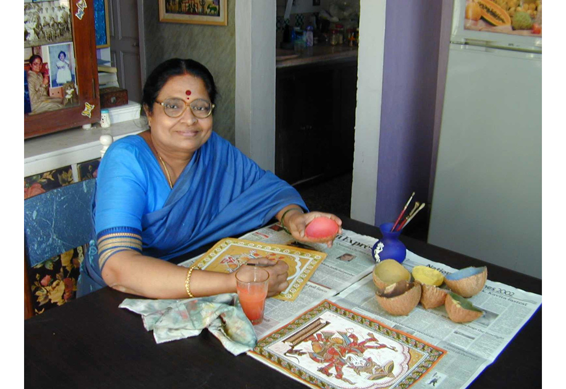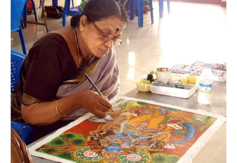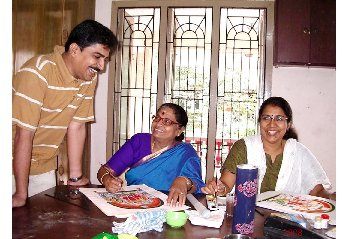 Dr. S. Premalatha doing Kerala Mural Painting -Venugopalan in 2013.