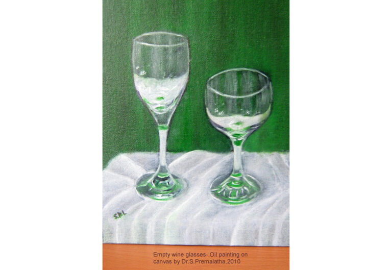 Empty wine glasses-oil painting on canvas by Dr. S. Premalatha 2010