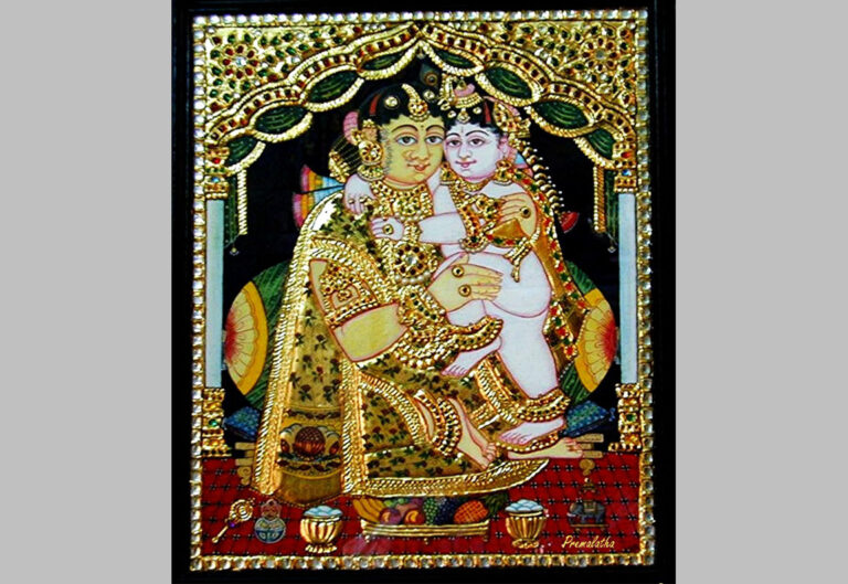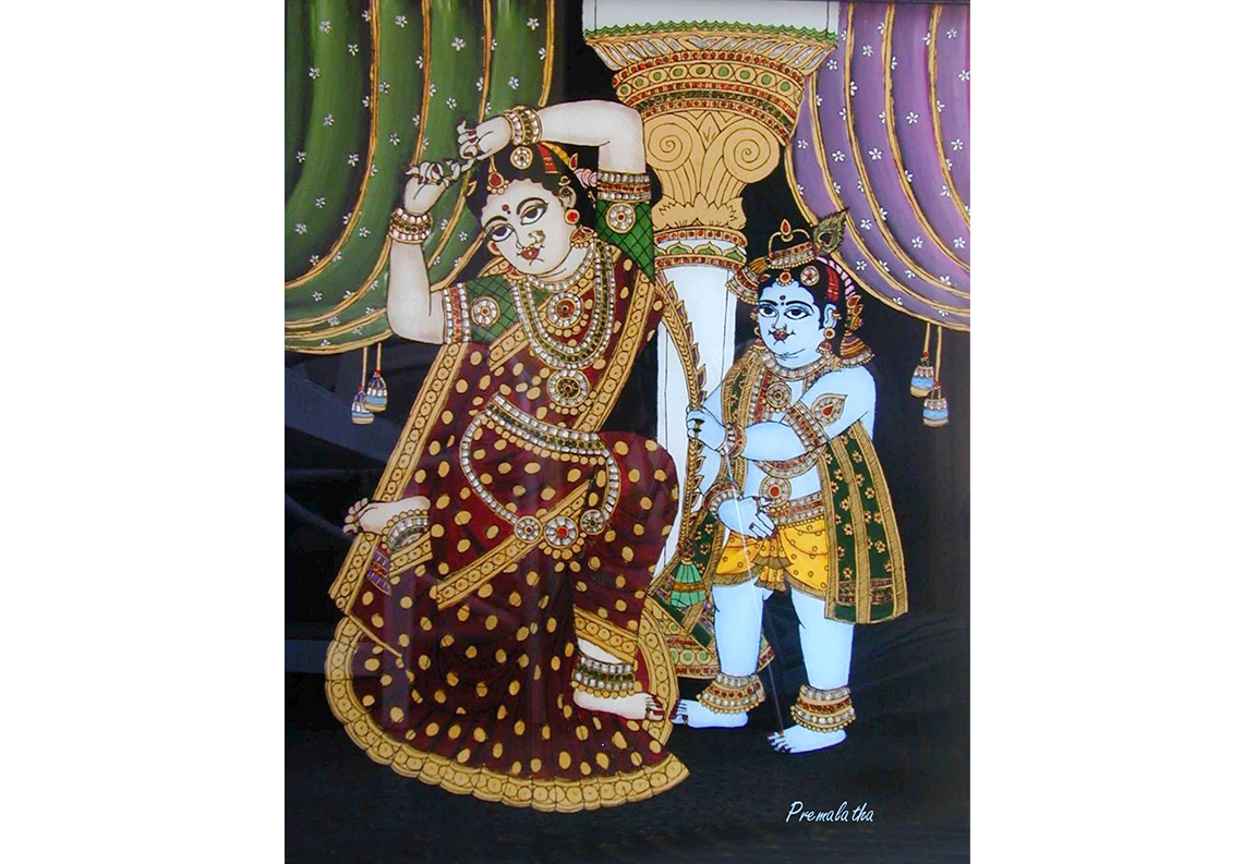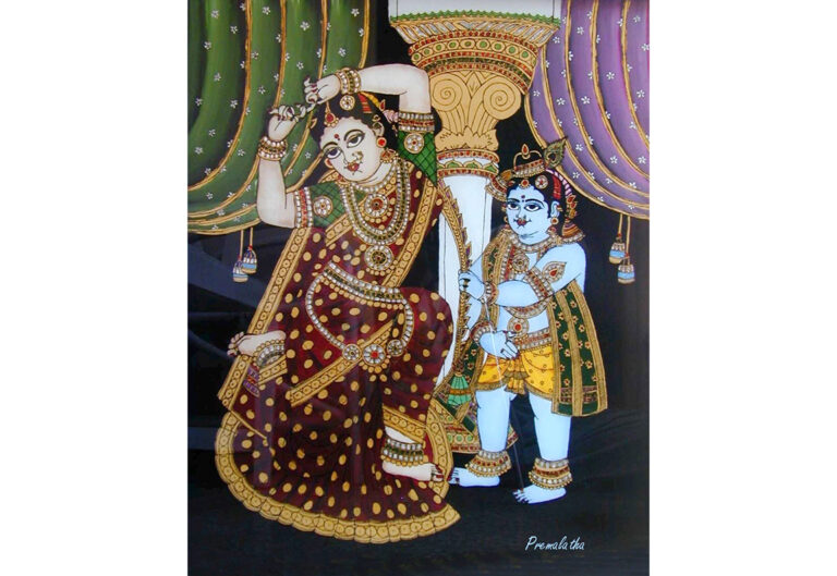 Tanjore painting-Yasodha Krishna by Dr. S. Premalatha. Guru Sri Balaji Srinivasan.