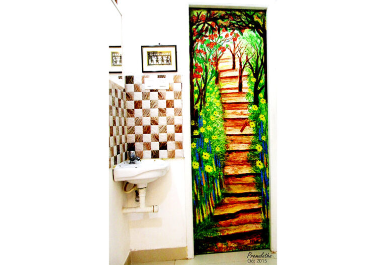My Acrylic painting on the bathroom door of my apartment .Oct 2015
