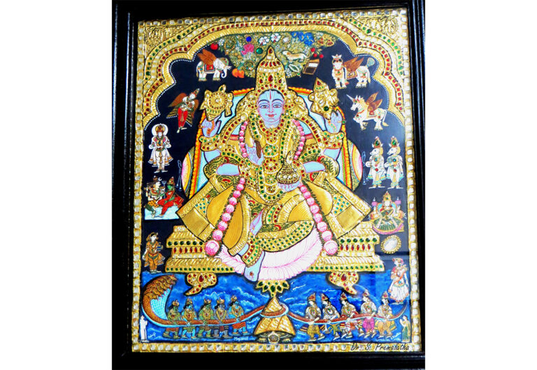 Tanjore Paintingt Dhanvantri by Dr. S. Premalatha-Guru Sri. Balaji Srinivasan.