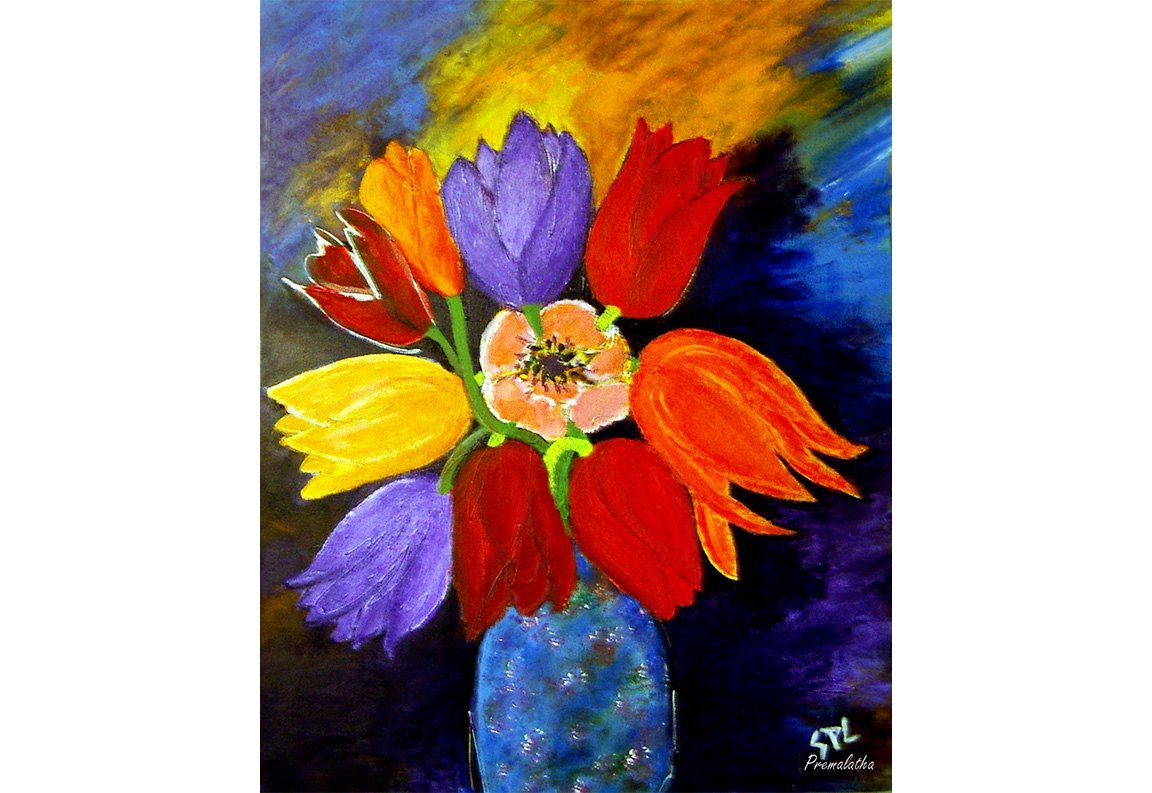 Tulips First Acrylic painting by Dr. S. Premalatha in US