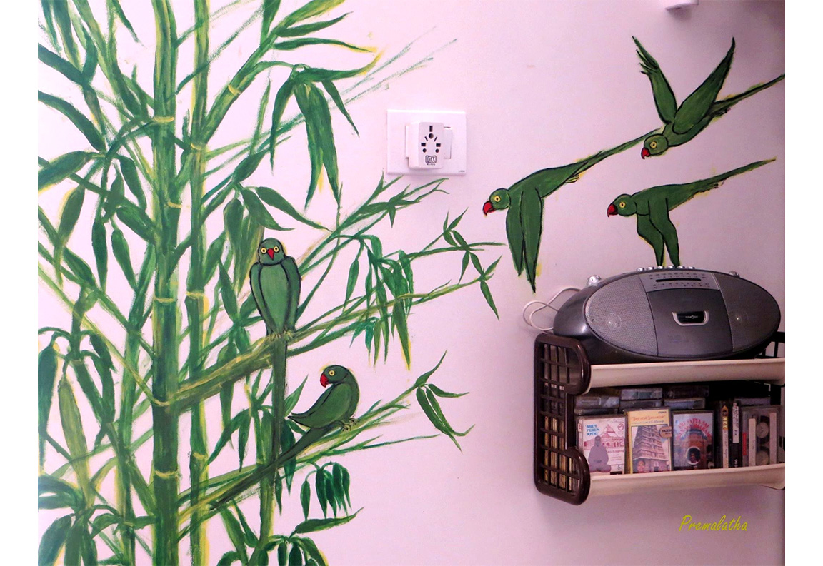 Wall painting at home -Bamboo and Parrots with Acrylic