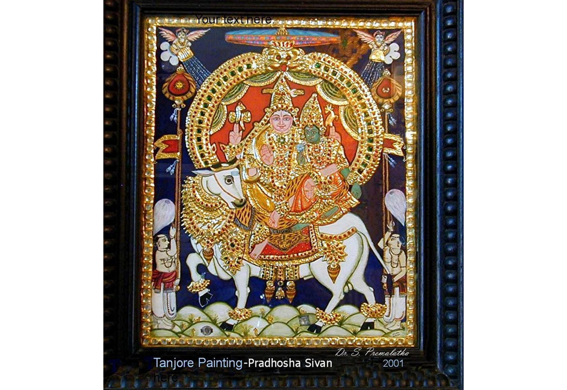 Tanjore painting taught by Sri Balaji Srinivasan at Chennai, Rishabha vahana Siva Parvathi by Dr.SP 2001